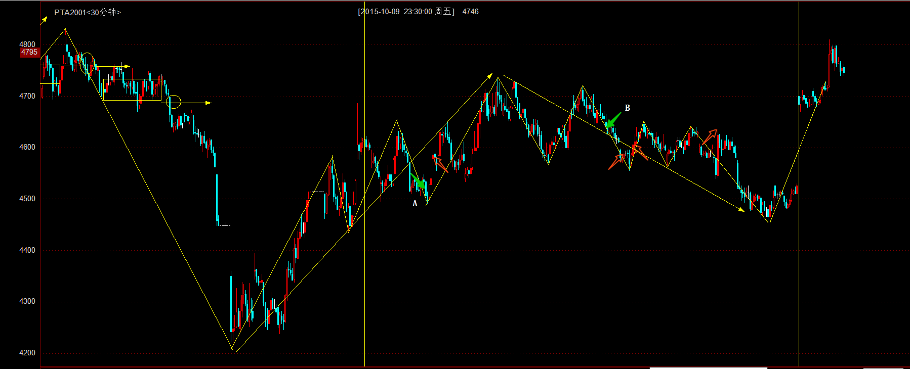 pta的走势奔走很厉害,不容易出结构。不过8月份是有两个点位可以抓到空的行情的。如图,不过由于5F级别确立了多头,就没有跨级别去套30F级别完备下。