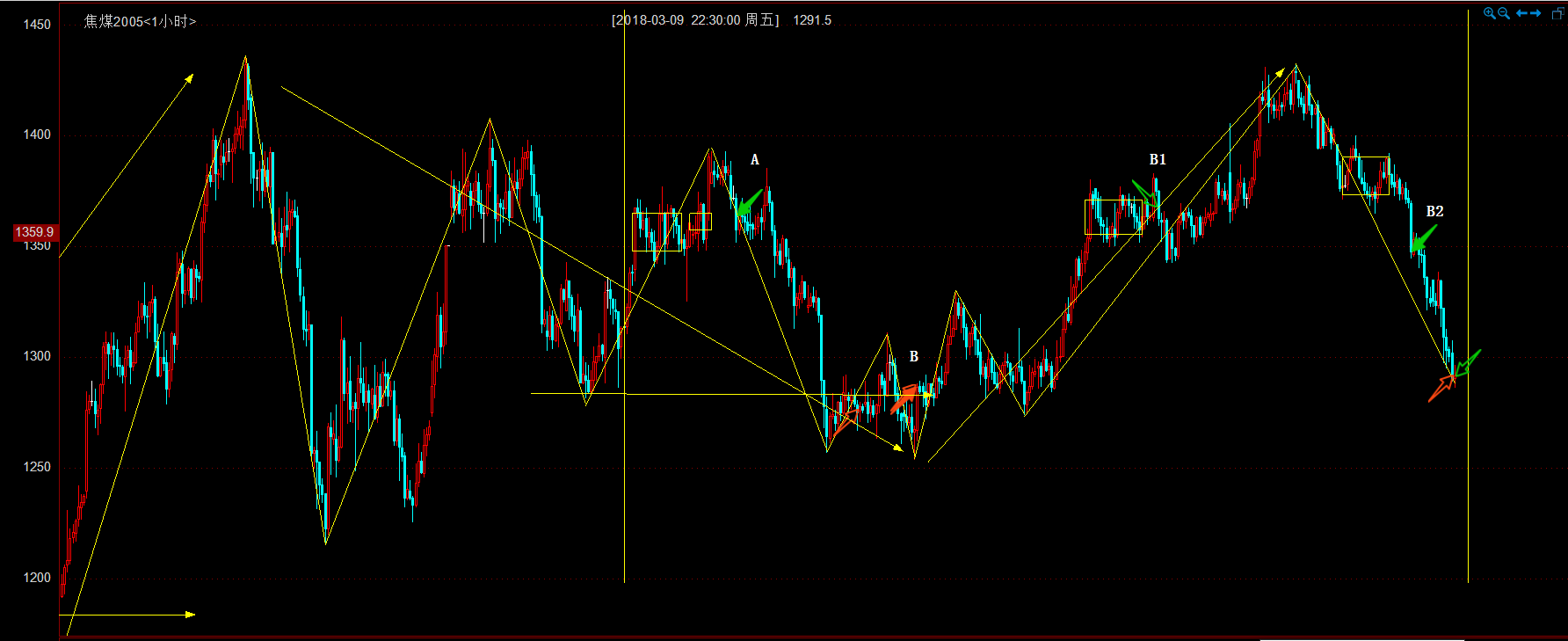 B: 5F级别盘背止损不大直接进,动止一次后B1 5F级别盘背反手,B2 1F级别盘背套5F级别完备下再反手,B3 5F级别盘背再反手,B4 1F5F级别双盘结构突破再反手空,B5双盘拉回再反手,最后扩展止损。