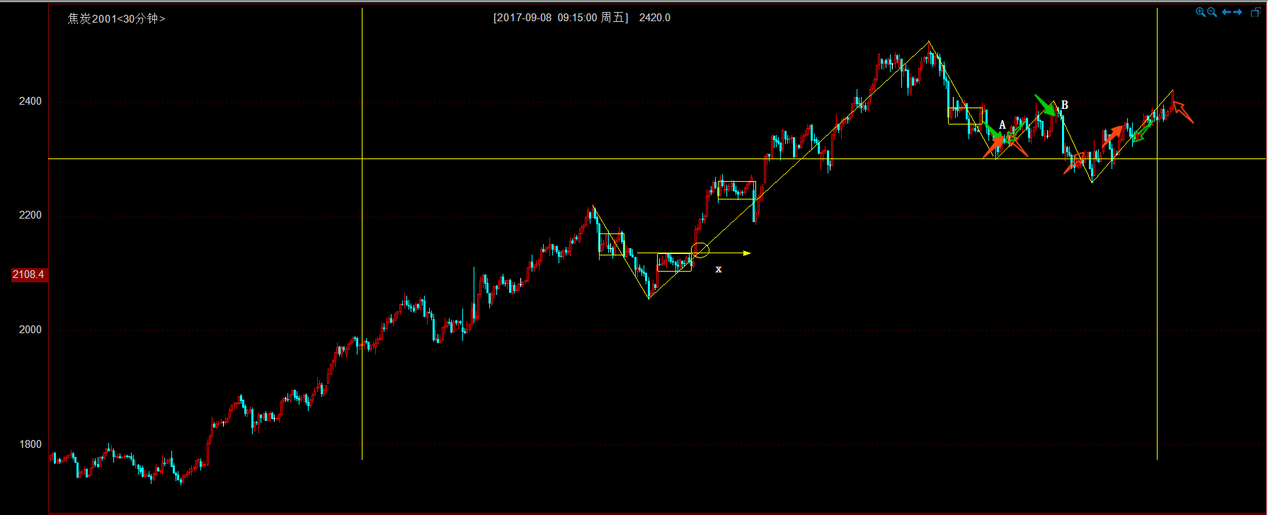 B: 1F级别盘背,2400整数压制明显,5F级别下冲二卖。B1动止,B2锁仓败笔,因为觉得如果止损解锁也是一定有利润,其实不然,B3全平。
