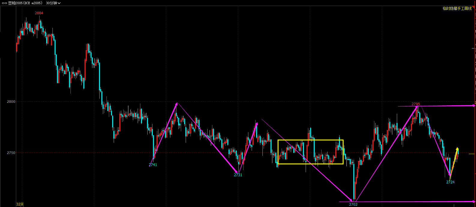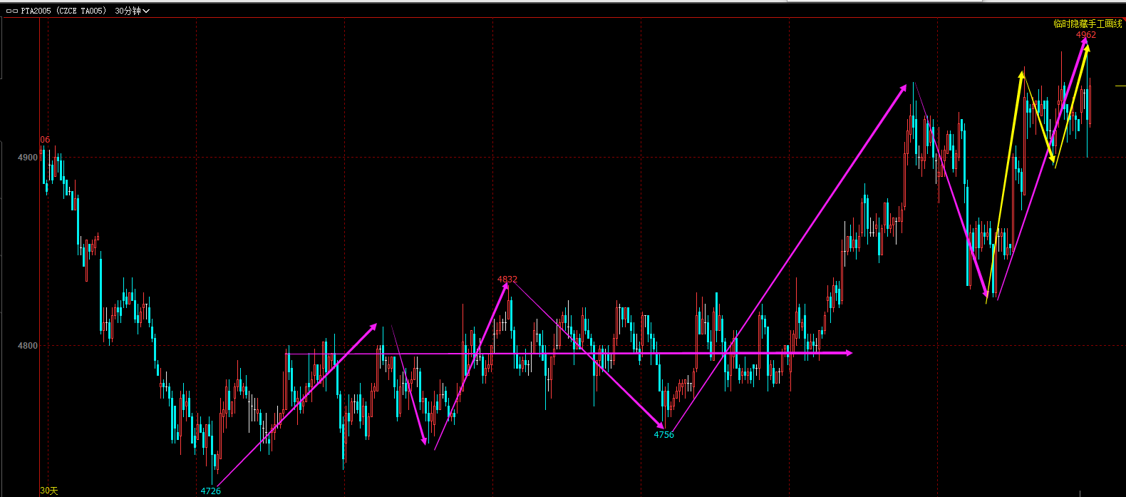 30F级别三卖预期在,空暂时没结构,多大的话5F级别盘背可以,不过第二中枢了,不一定合适。